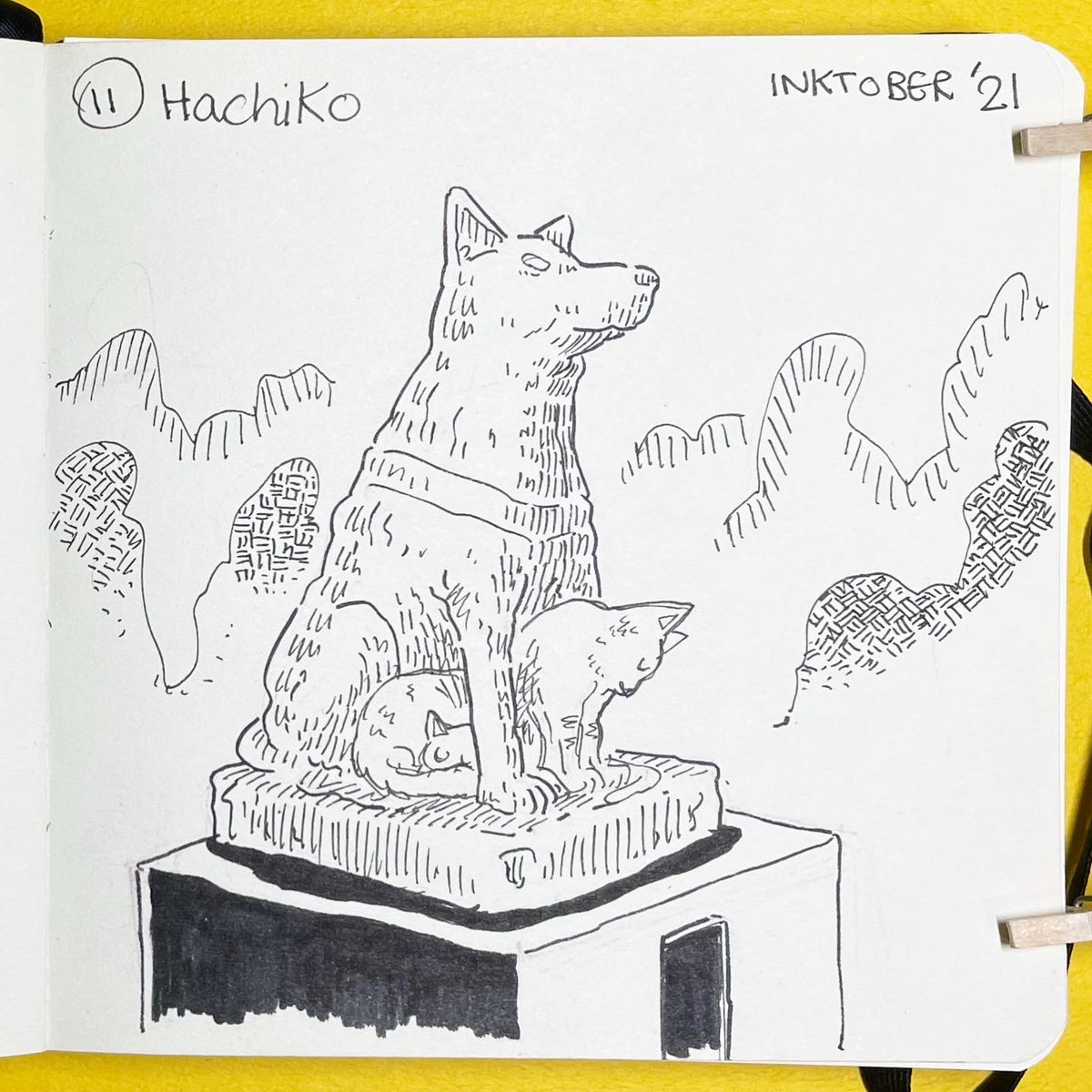 #Tokyober (11) Hachiko. The statue in Shibuya to commemorate Hachiko, the loyal dog who waited for years his master after he died. A couple of years ago, a few cats decided that the statue is the perfect place to chill at. #inktober2021