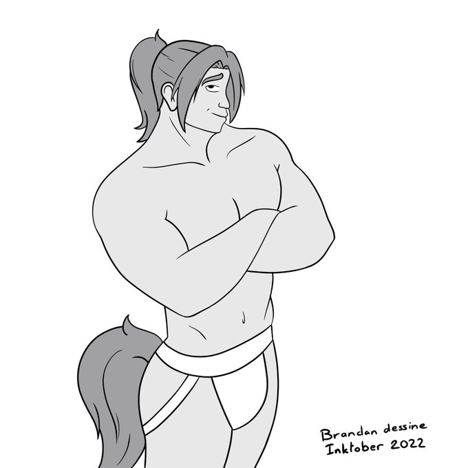 #Inktober - Jour 19 - #Ponytail Je vous laisse chercher comment tiens la seconde queue de cheval 😜 #inktober2022day19 #inktober2022 #inktober2022ponytail #sexymen #art