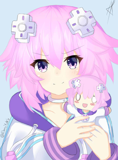 Si Nep Nep sola ya es mona imagínate con su peluche juntitas ~\(≧▽≦)/~ otro dibujito de #Neptunia #ネプテューヌワンドロ #ネプテューヌ #digitalart
