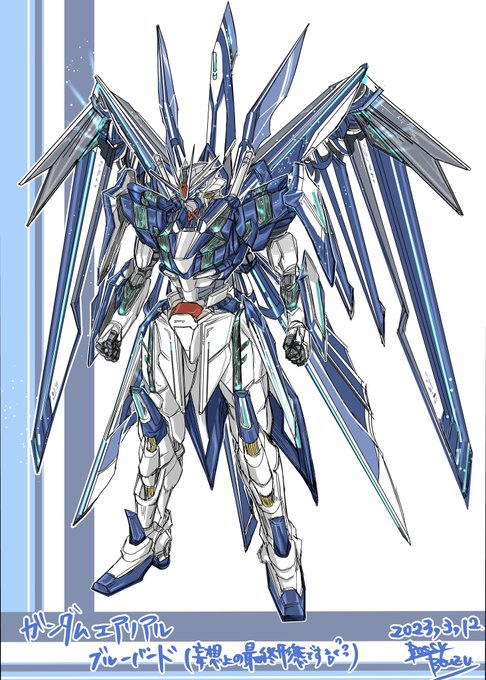 昨晩妄想から生まれた、個人的好きが詰まったガンダムエアリアル最終形態(繰り返しますが妄想です🤣)完成‼️ その名も『ガンダムエアリアルブルーバード(厨二病爆発)』🦜✨✨ Twitter仕様なイメージも乗せて‼️ 最高に楽しかった😂✨‼️ #ガンダムエアリアル #水星の魔女 #絵描きさんと繋がりたい