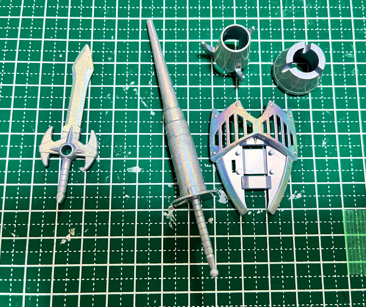 上手く写せてませんが、ガーベラストレートの刀身を月光蝶ホロで塗ってみました。 #ガンプラ #ガンプラ好きと繋がりたい #ガンプラ好きな人と繋がりたい #ガンプラの画像貼るとRTされると聞いて