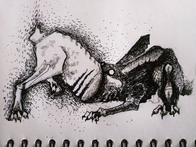 11. Орёл Я - пламя, я - смерть. Кхм, не тот сценарий. Не суть. По сторонам в любом случае смотреть надо, не то охотник сам станет добычей. #inktober #inktober2022 #inctoberday11 #inktober2022day11 #eagle #inktober2022eagle #art #monster #малюнак