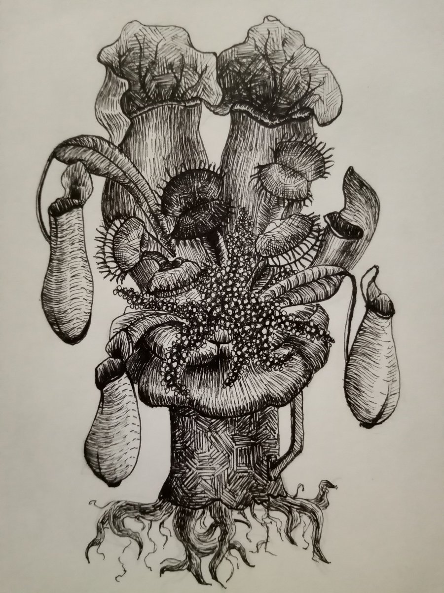 6. Букет Плесень в чашке может озвереть, если её долго не кормить, так что осторожнее с посудой. И с домовыми. В плохом настроении они подаются в плесеневоды, а плесень, как уже известно... #inktober #inktober2022 #inctoberday6 #inktober2022day6 #bouquet #inktober2022bouquet