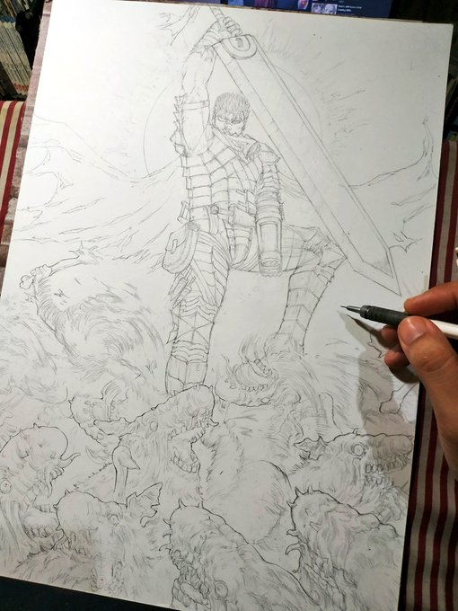 Pencil done, next gonna ink it The Idea of this art from doom poster #ベルセルク #guts #KentaroMiura #Berserk #fanart