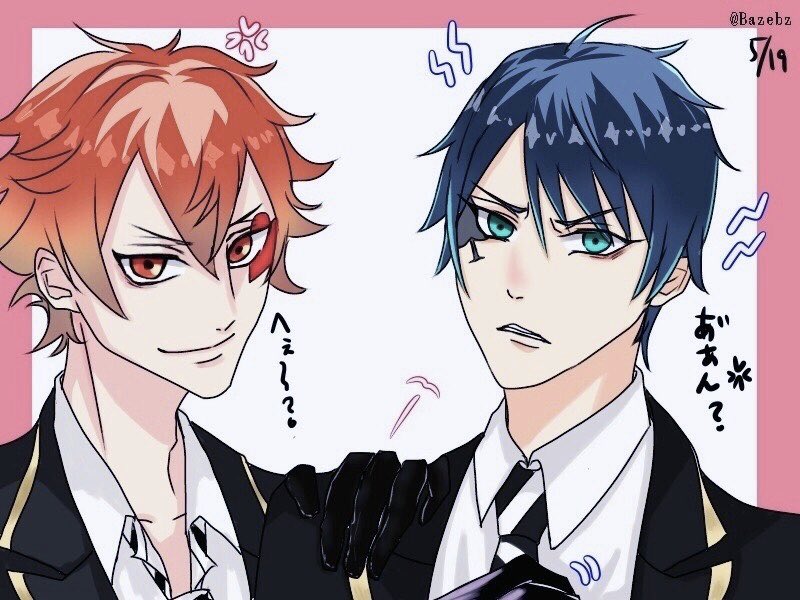 1 6 本日ツイステ始めた記念✨ 先輩に絡まれたところに来てくれた❤️♠️ #ツイステファンアート 20/05/19 23:01
