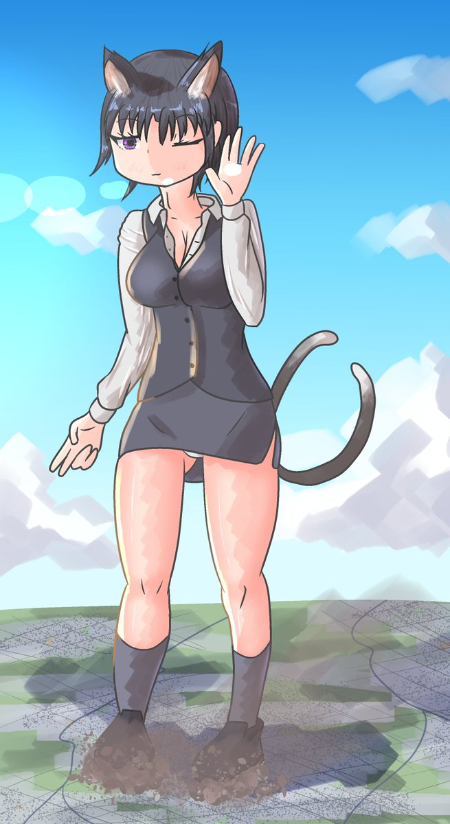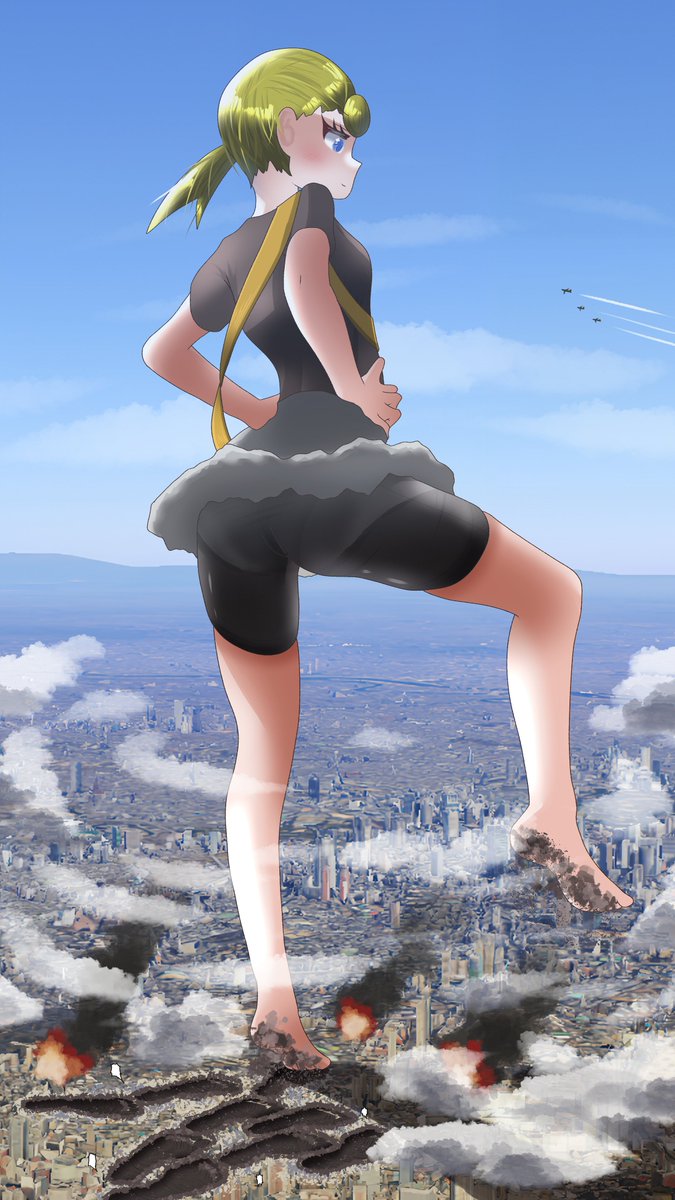 タキネコさんのオリキャラのぼたんさん描きました! #巨大娘 #Giantess