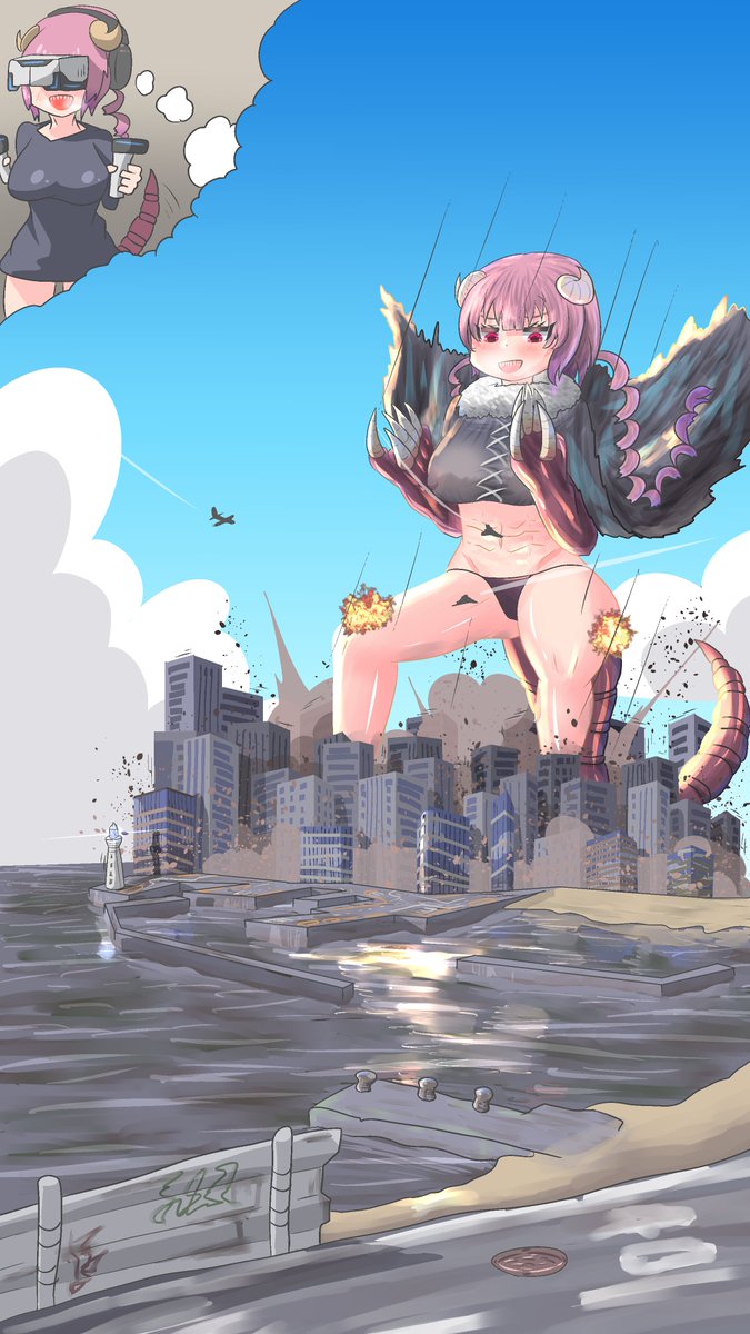 Hankさんがもうすぐ誕生日なのでカナデちゃんを描きました。 #巨大娘 #Giantess