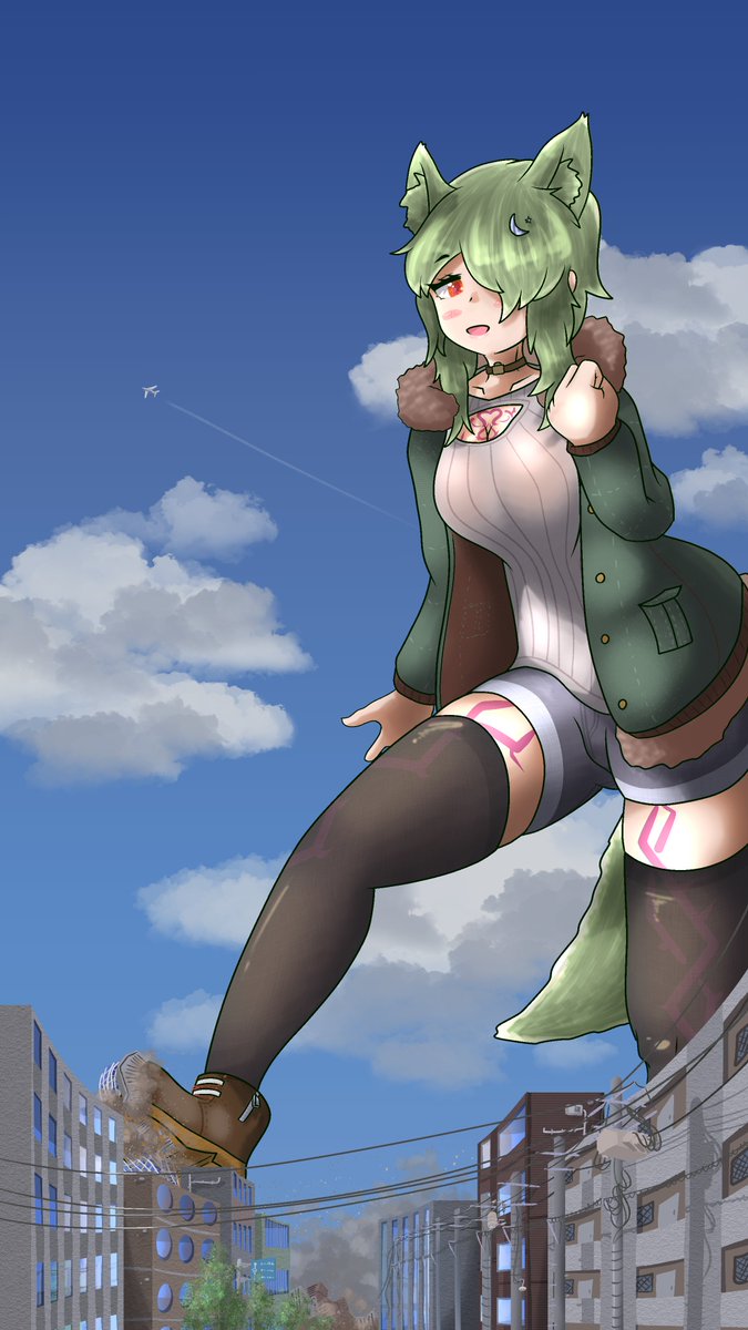 十里木さんを描いてみました! #巨大娘 #Giantess