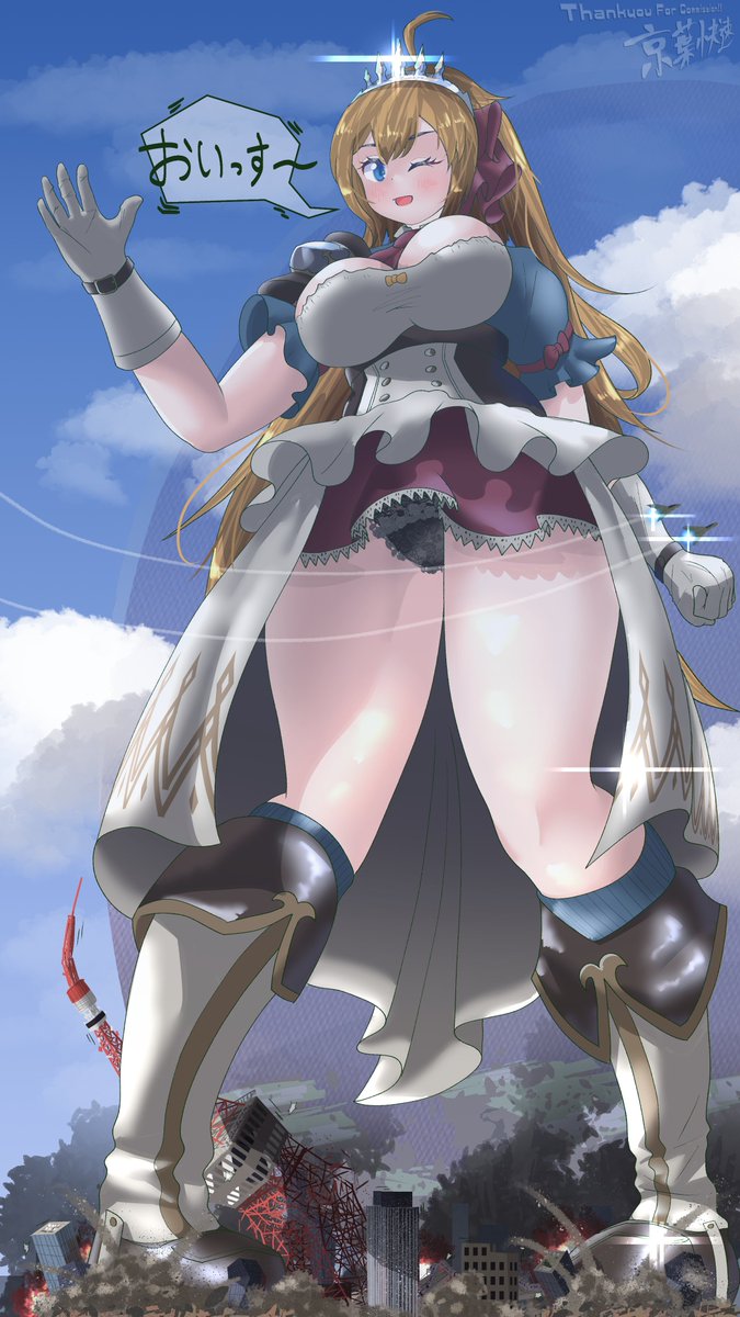 #巨大娘 #Giantess 巨大なペコリーヌとそれを見守る更に巨大なラブリーモニカです。 SKEBありがとうございます!