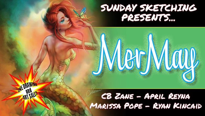 Tonight on Sunday Sketching it's all about MerMay!!! Artists April Reyna, Marissa Pope, Ryan Kincaid and CB Zane will be going fishing and who knows what they might catch!!! 9pm eastern time! #sundaysketching #artmatters #mermay