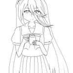今日投稿した記念絵の背景無し版と線画もどうぞ。カフェ〜。