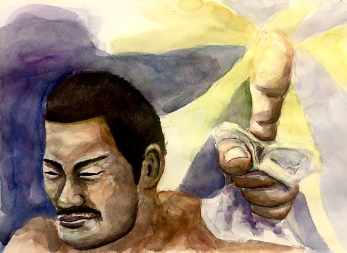 水彩画始めました🙋♂️ オリンピックのフェンシングにとても感動したので、 ファイナルファンタジーⅡ より フリオニールがフェンシングで優勝したときの絵を描きました。 初めてにしてはいいんじゃないかな? #水彩画 #ファイナルファンタジー #絵描きさんと繫がりたい