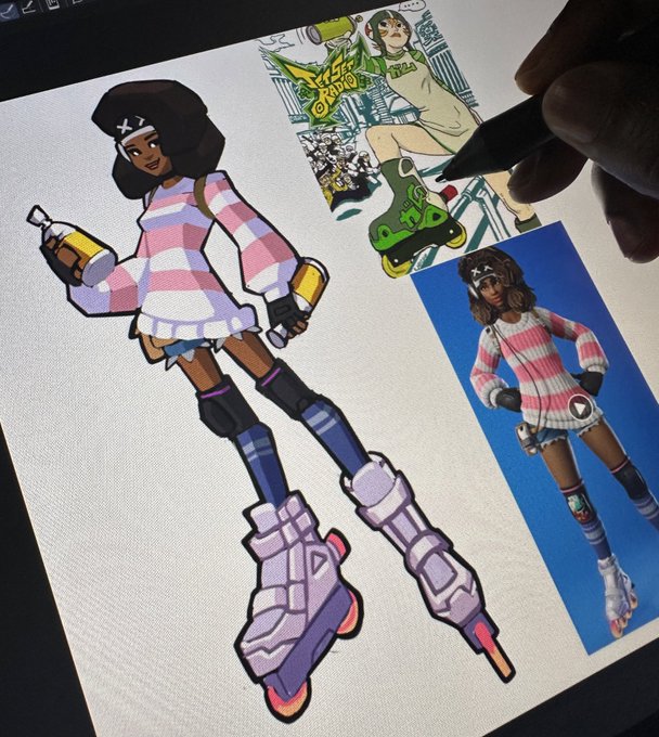 Y’all play jet set radio? 😉 Thinking of relearning blender just to model her in that style 🤔. #Fortniteart #jetsetradio