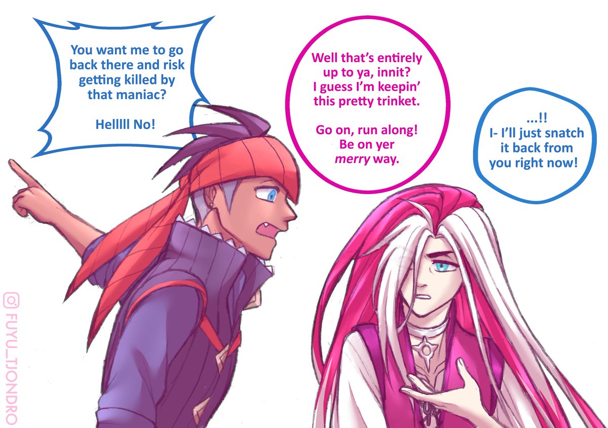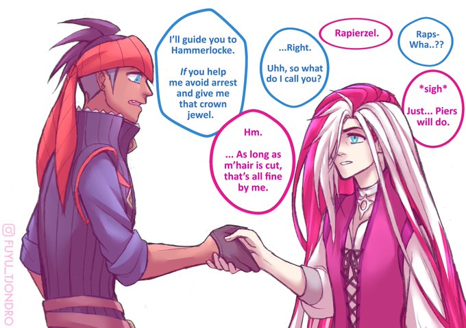 Negotiation. . 😏 FLYNN RIDER x RAIHAN 🐉 ☀️ RAPUNZEL x PIERS 😈 . #Pierspokemon #piers #ネズ #RaihanPokemon #raihan #キバナ #Swsh #pokemonSwSh #rapierzel #fanart #rkgk #crossover