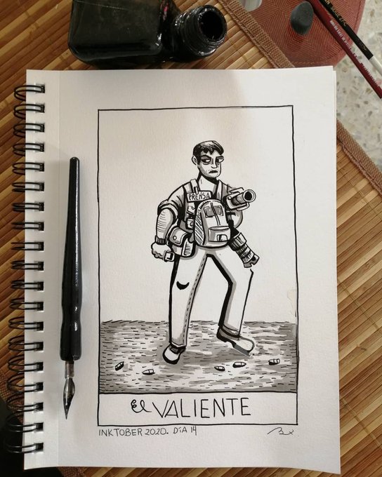 El valiente. #inktober2020 #dia14 #day14 #valiente #loteria #mexicana #periodista @anvalerdi @LuisAndradeB @elmogwai @ElenaVillaurrut @conejodeluna