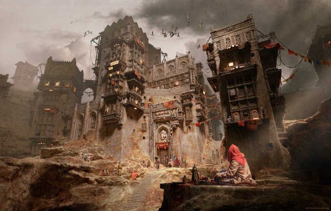 ⚡️SOME NEW STUFF IS THERE⚡️ This is Baj-Nhreez - a temple complex from the ancient world, when the Salty Steppes were a land of meadows and ancient civilizations that lived in numerous cave cities throughout the Velvet Road world were a common thing... #velvetroad #illustration… twitter.com/i/web/status/1…