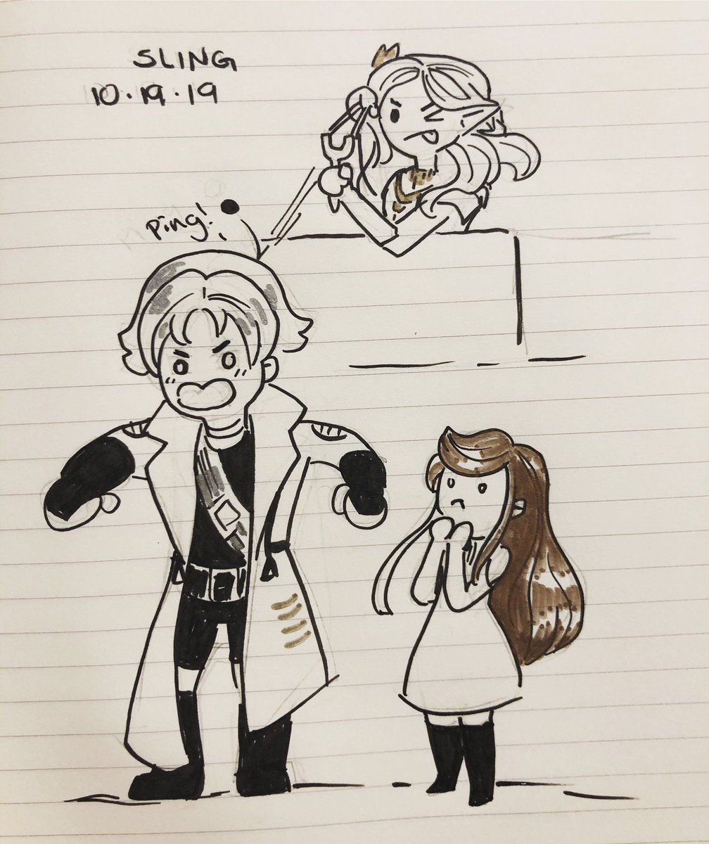 Day 19! Did I draw my WoL shooting Thancred with a slingshot? I sure did. #inktober2019 #sling #slingshot #ff14 #shadowbringers #thancred #minfilia #finalfantasyxiv #myart @BeeCurrieArt