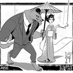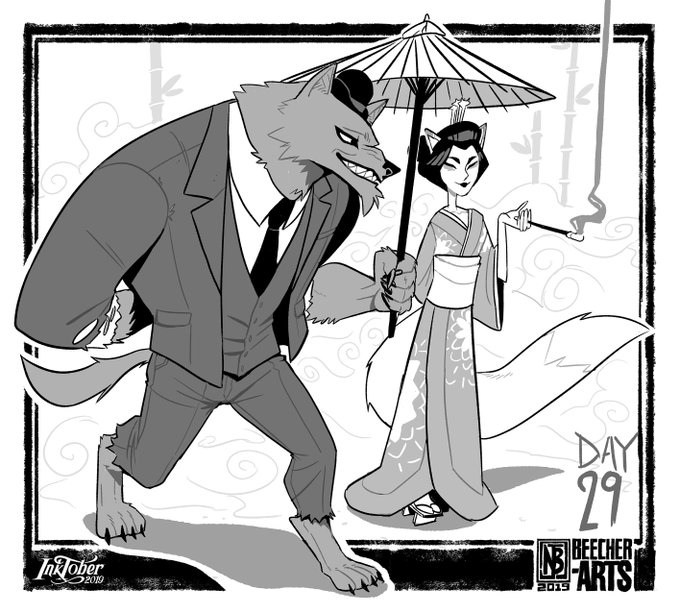 Inktober Day 29: The Fox and The Wolf #InktoberDay29 #Inktober2019 #Werewolf #Kitsune #Cryptid #Folklore #artistsontwitter