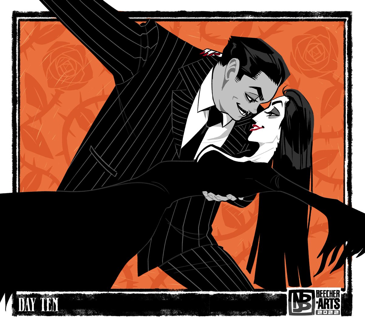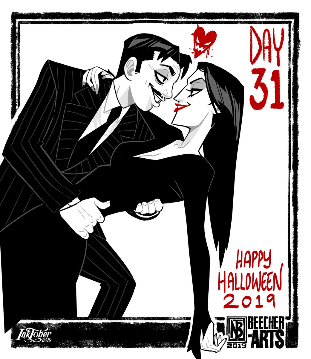Inktober Day 31!!!!!! HAPPY HALLOWEEN EVERYONE!!!! (Did you really think I'd go a year without drawing Morticia and Gomez?) #InktoberDay31 #Inktober2019 #MorticiaAddams #GomezAddams #addamsfamily #HappyHalloween #artistsonTwitter
