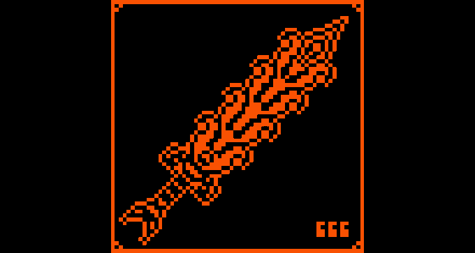 I don't know if I'll play catch-up and do one for everyday this month, but here's a 1-bit pixelart take on the "Flame Sword" from Dragon Quest 1, for my first #swordtember piece. Size: 64x64 pixels