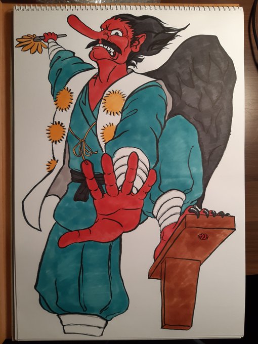 And now from something different. I should have spent more time with it, but it was a goo learning experience. #inktober #inktober2021 #inktoberday25 #tengu #japaneseculture