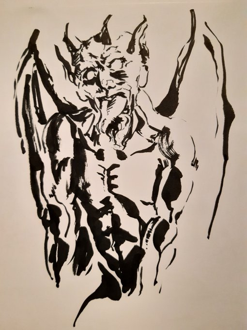 Feeling lazy today, so using yesterdays #Inktober prompt list. I really enjoy doing raw ink drawings now, no draft lines. I've got to work on the posing though, or maybe its just the laziness. #inktober2022 #inktoberday2 #gargoyle #brushpen