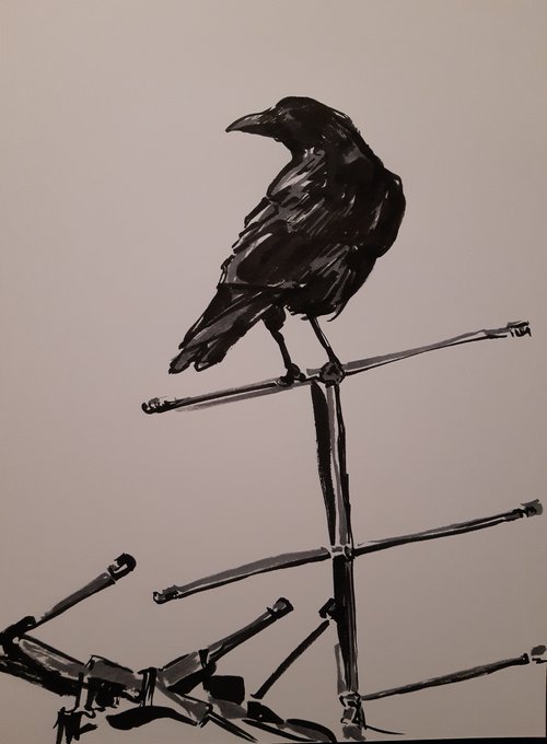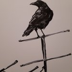 Bird. I tried to draw some clouds on it after, good thing I took a photo before that. #inktober2022 #inktober #inktoberday6 #crow #brushpen