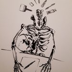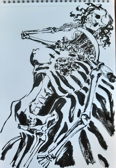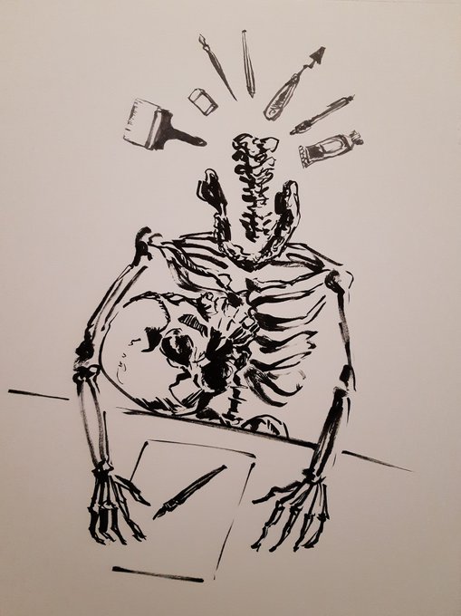 Sometimes it just pops off. #inktober #inktober2022 #inktoberday10 #skeleton #bones #skull #art #brushpen