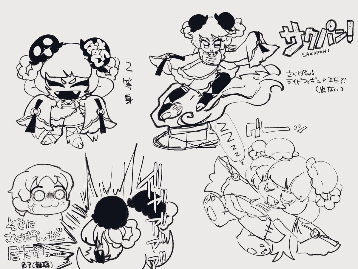 #さくぱんにあげるやつ 職場で描いた落書きあげるの忘れてたワヨ❣️ いろんな衣装のさくぱんがみてえな〜リングフィットのさくぱん好きだな〜