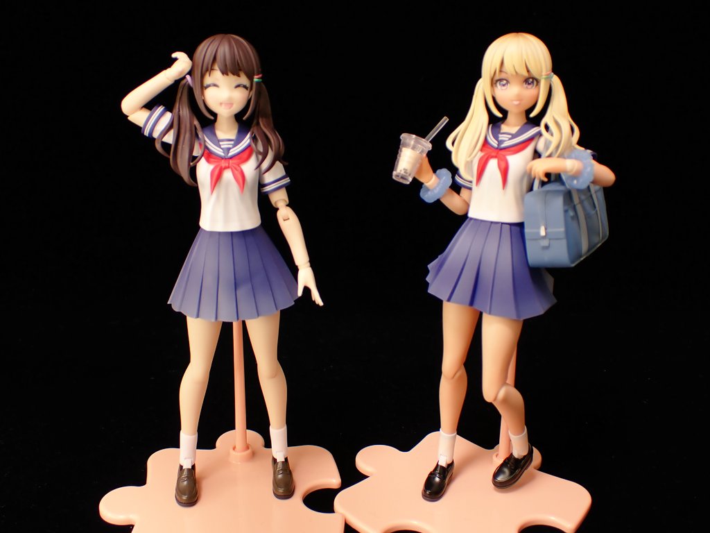 創彩少女庭園 結城 まどか【桃桜高校・夏服】2体、完成してました(過去形) これまで作った創彩〜と比べると、服部分のシャドウ吹きをかなり行いました。一番上手く行った箇所は……靴……かな……。