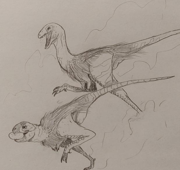 A Berthasaura dashes away with an egg, however the parent Vespersaurus is hot on its heels. #paleoart #paleontology #Dinosaur