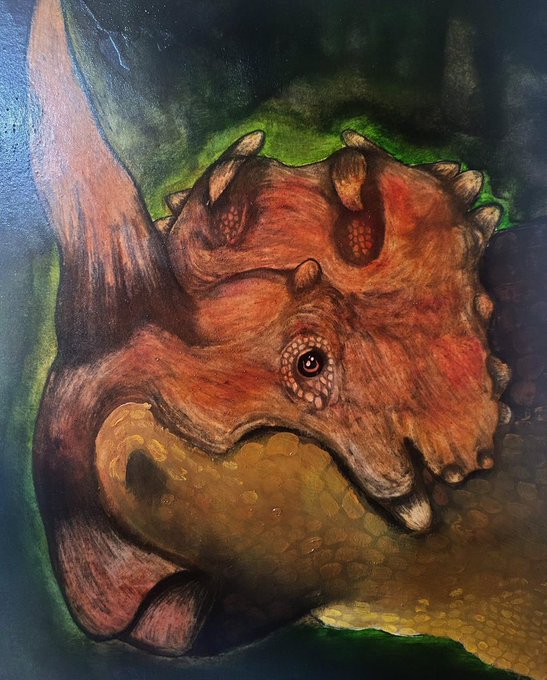 Prehistoric Beast (Traditional Painting) by @BenitoDlr #art #artwork #drawing #drawdinovember #illustrationart #illustration #acrylicpaintings #paintings #paintingoftheday #paleontology #paleoart #animals #animalkingdom #JurassicPark #JurassicWorld #dinosaurs #ceratopsians