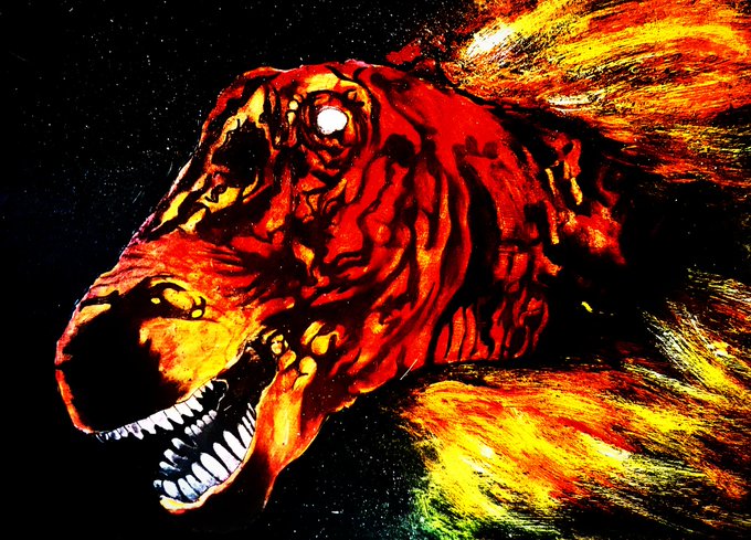 Fang (Traditional Painting) by @BenitoDlr #Artworks #art #artist #artistsontwitter #drawing #FanArtFriday #Fanarts #painting #paintingoftheday #OilPainting #paleoart #paleontology #AnimalKingdom #mesozoicera #GenndyTartakovsky #dinosaurs #tyrannosaurusrex #Primal #primalseason2
