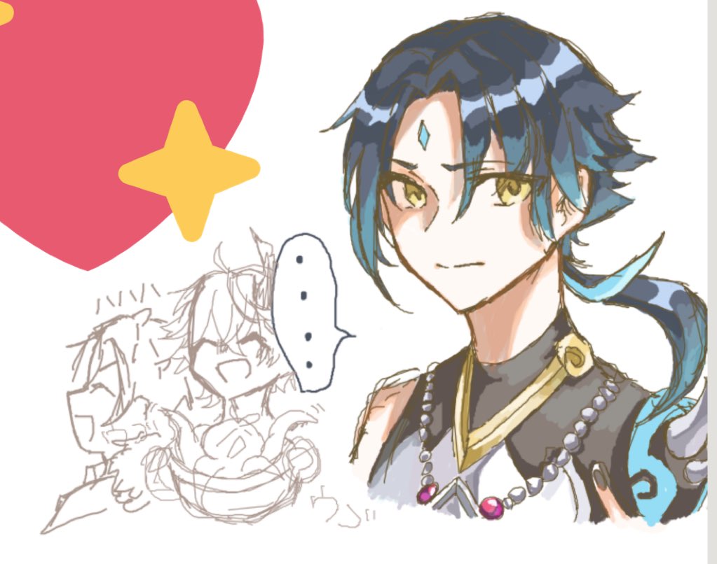 原神の公開ルームで絵チャしました!皆さんの可愛い絵が癒しすぎた タルタル君の料理は絵チャで描くもんじゃないですね。。。きつかったですw #イラスト #原神 #無名絵師