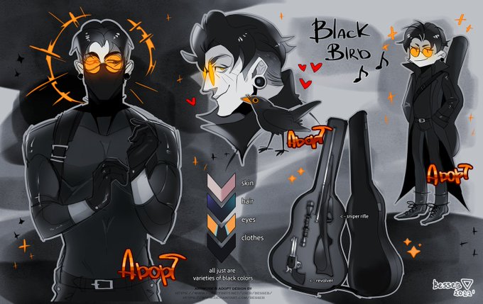 On the eve of Halloween, I announce a week of designs! 🌹 And here is the first of them - a jackdaw in a suit, but unusual. He is my favorite, it will be hard to part with him hh Already on my FA & DA! #myart #adoptable