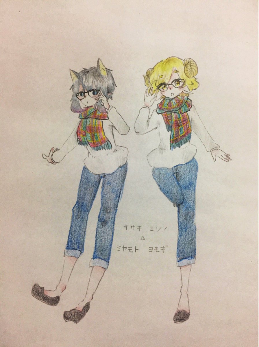 #フォロワーの絵柄で見たいまじふぇすっ子 ギリギリになってしまいましたが、宮崎っ子の百合ちゃんを描かせていただきました💕 百合ちゃんが描いてる風船みたいなのの元ネタは宮崎出身の画家・瑛九の《旅人》です🙌