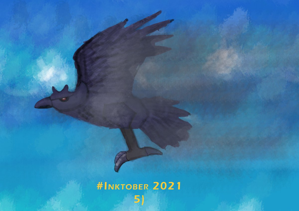 #inktober2021 #digitober #inktober2021day5 Hoy toca cuervo y para ello dibuje a un Corviknight en pleno vuelo y con unas patas que... espero que cuente como cuervo XD 😂
