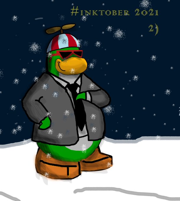 #inktober2021 #digitober #inktober2021day2 Hoy: Suit, ¿que hicé? a Rookie de #Clubpenguin con traje...y mientras nieva...no será lo mas creativo o siquiera decente pero, mirarlo; se ve muy fresco el pana XD