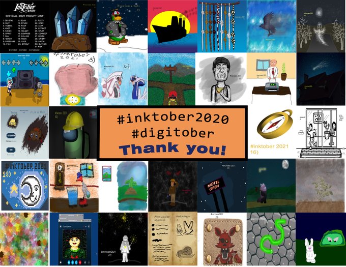 Hola a todos, aqui post final del #inktober2021 y agradecimientos, lo he pasado muy bien y en contra de todo se logro, aqui una recopilacion final de todo lo que logre, no prometo seguir subiendo cosas pero siempre se intenta, de todo mi kokoro <3 gracias
