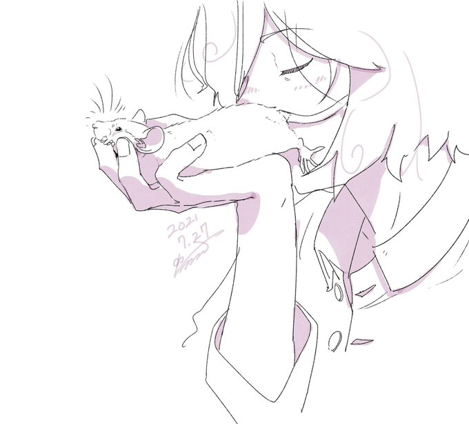 3 19 多分、ラット界隈はこれになるのが夢だと思う。 もふもふの毛皮に温かい体温、ポップコーンみたいな甘く香ばしい匂いに包まれる。 #rat #ファンシーラット #イラスト #ハグ 22/12/18 16:14
