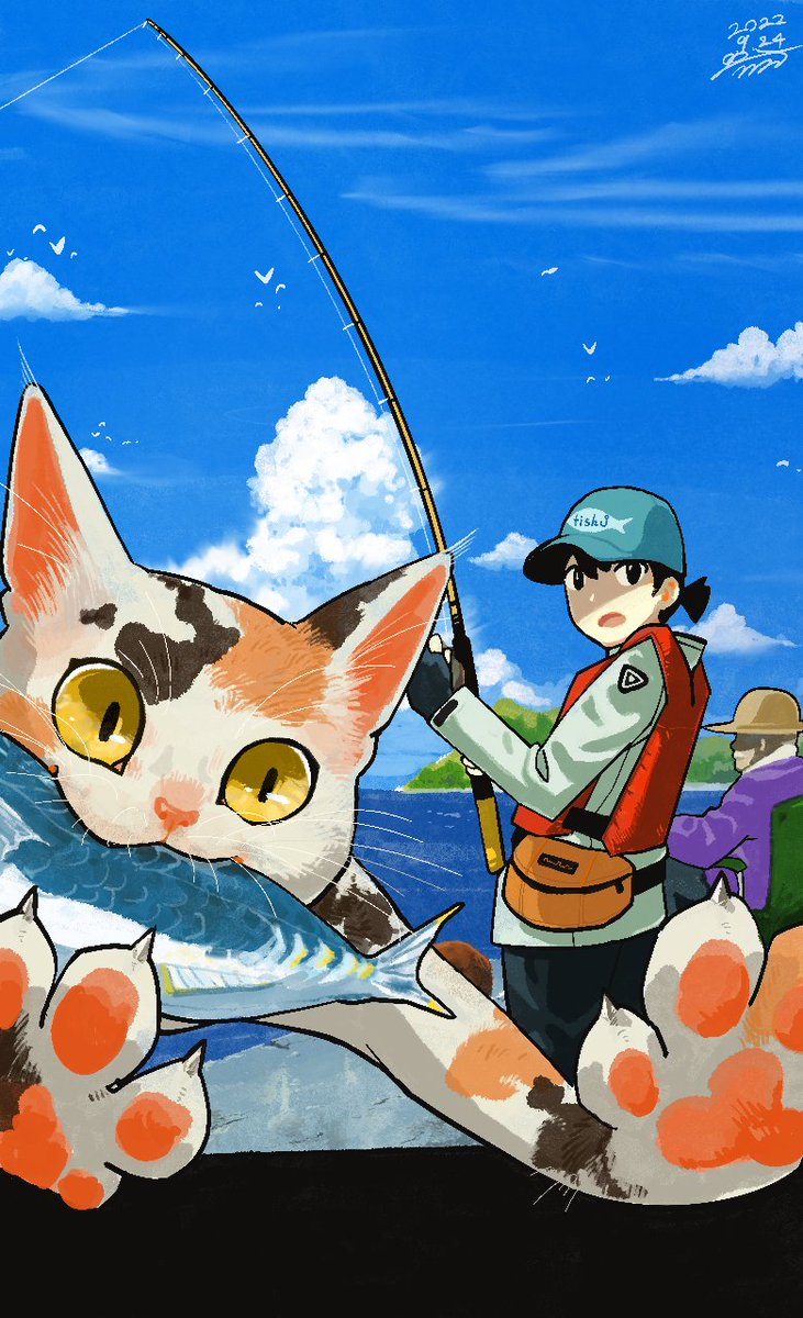 0 2 描いた。 #LINE背景 #依頼 #夏 #イラスト #釣り #猫 22/09/24 15:46