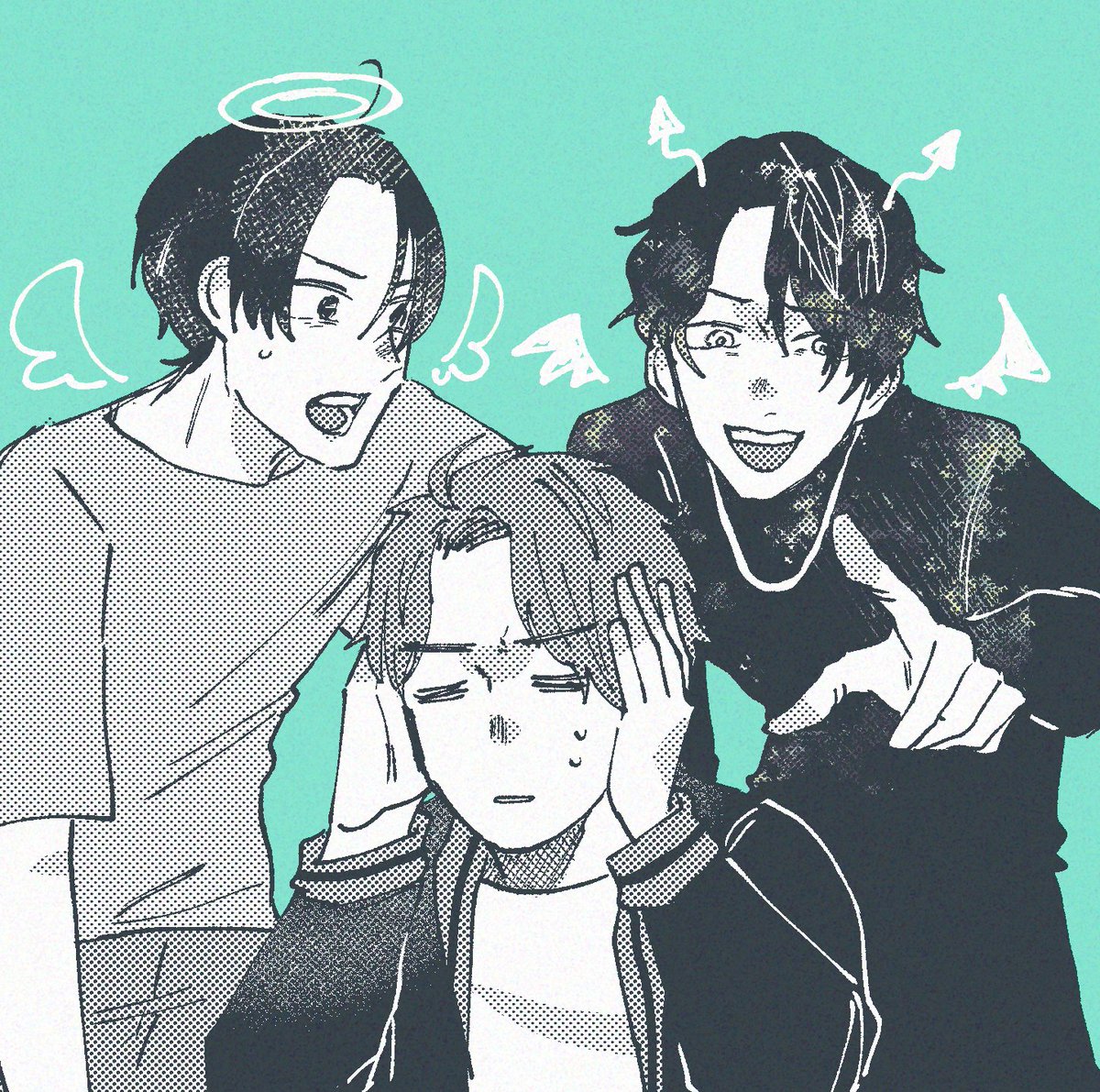 悩める長男の周りで天使と悪魔やってる次男たち描きたかったんだけどよくわからない絵になった