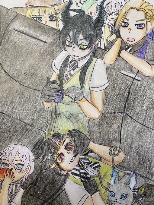 苦手な構図に心が折れそうになり雑な部分が多めですがなんとか完成致しました。 #ツイステファンアート #ルーク #ヴィル様 #エペル #セベク #シルバー #マレウス様 #リリア様 #グリム