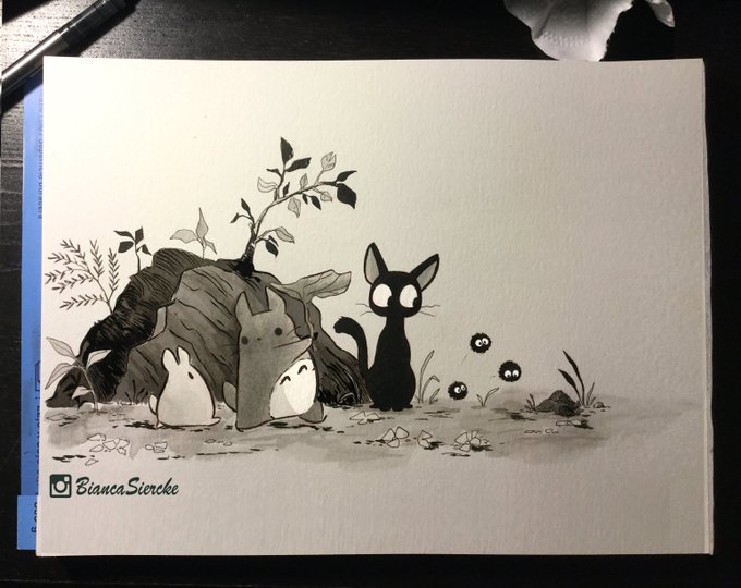 Totoro and Kiki's delivery service are amazing films by Ghibli. Miyasaki has this amazing ability to combine the ordinary with the extraordinary. Also the animator in me can't help but gush over these films ^^ . #inktober #inktober2018 #ink #inktoberday8 #totoro #KIKI #トトロ