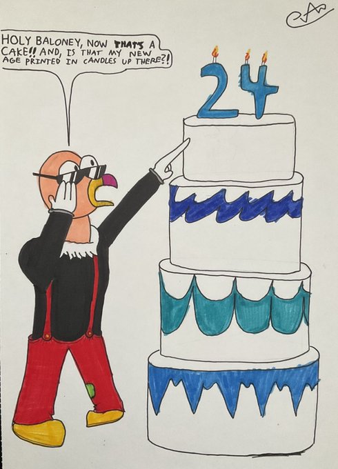 Chappy reacts to a ginormous cake being presented to him for his 24th birthday #art #drawing #artwork #drawingoftheday #oc #originalcharacter #artistsontwitter #artistontwitter #happybirthday #birthday