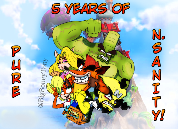 5 YEARS OF N. SANITY!!!!! I'm probably late for Crash N.Sane's anniversary, BUT here's the drawing for it!! hope to see more of Crash this year!! #CrashBandicootFanart #CrashBandicoot #CrashCommunityDay2