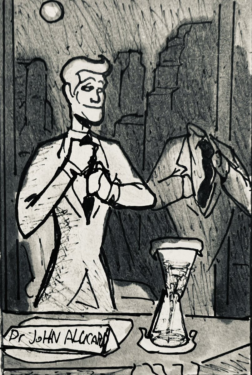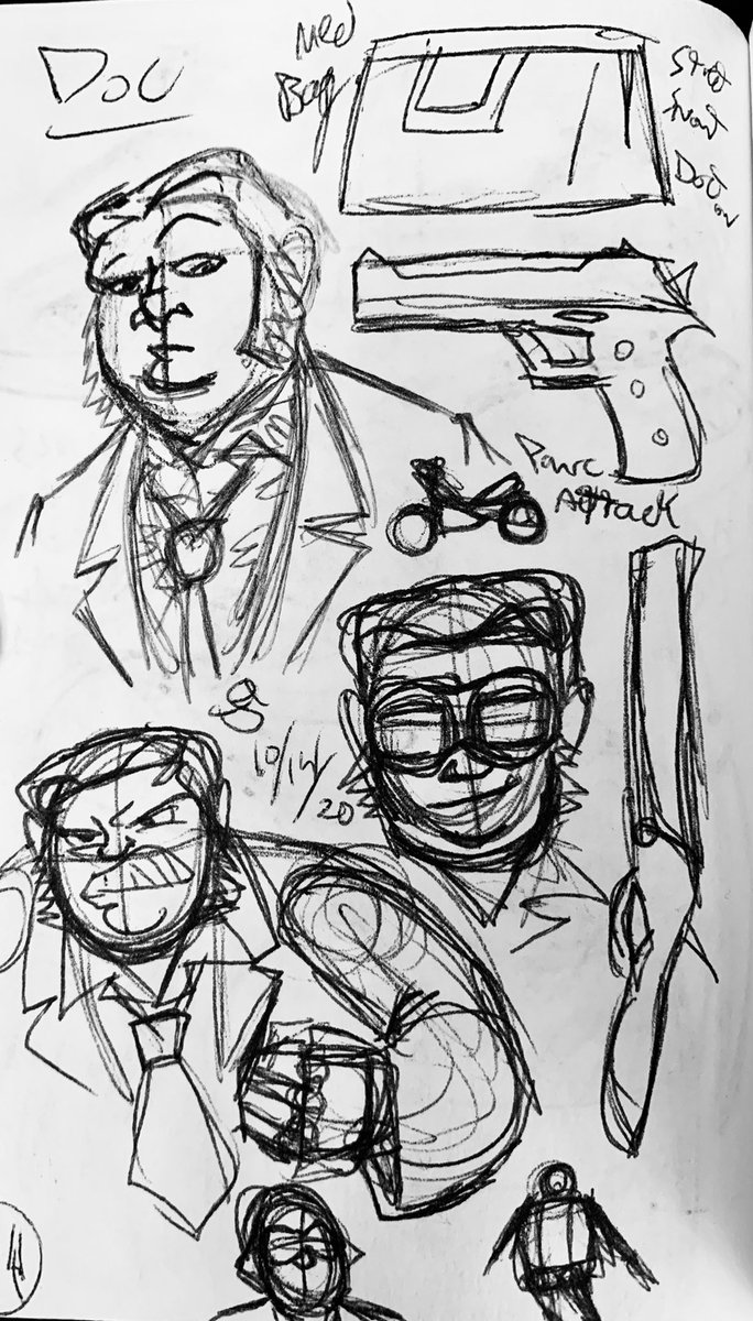 Doc Slaughter aka The Doc. Lives out of his ambulance, the Despotic Chariot, treating gang members, the poor and anyone that needs it. #inktober #blackandwhite #pen #ink #drawing #design #character #story #oc #doc #slaughter #ambulance #despotic #chariot #guns #paramedic #suit