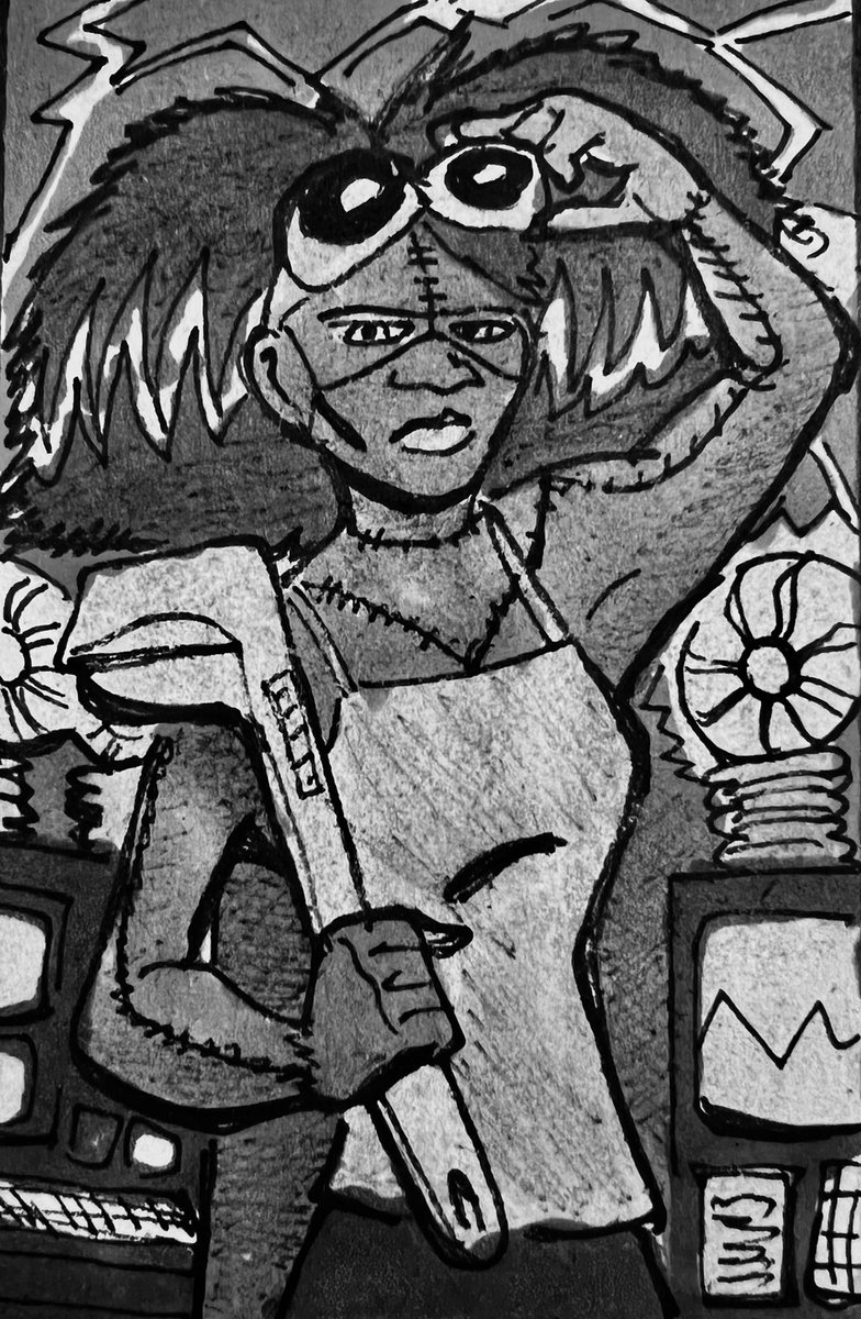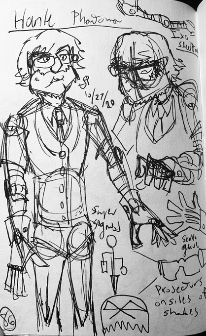Hank Phantoma aka the Cyber Phantom. Inventing genius of Greek Fire Industries, following in his mother’s footsteps, but hidden away and used by his father. #inktober #drawing #sketch #oc #cyber #phantom #inventor #handicapped #exoskeleton #robotics #son #corporate #engineer