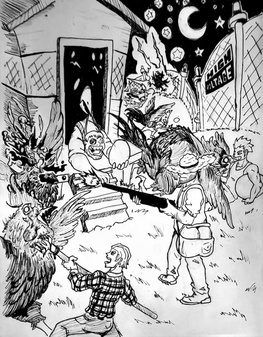 Day 16:Fowl- Farmer Pete had to admit, His profits had gone up ever since he'd started using GMO's on his crops and stock, but it recently it had made getting eggs much harder! #inktober2022 #inktober2022fowl #inktober2022day16