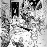 Day 27: After ransacking the forest village the young Demon settled down for one of his favorite snacks! The shrunken heads of his conquered victims. #inktober #inktober2022 #inktoberday27 #inktober27snack